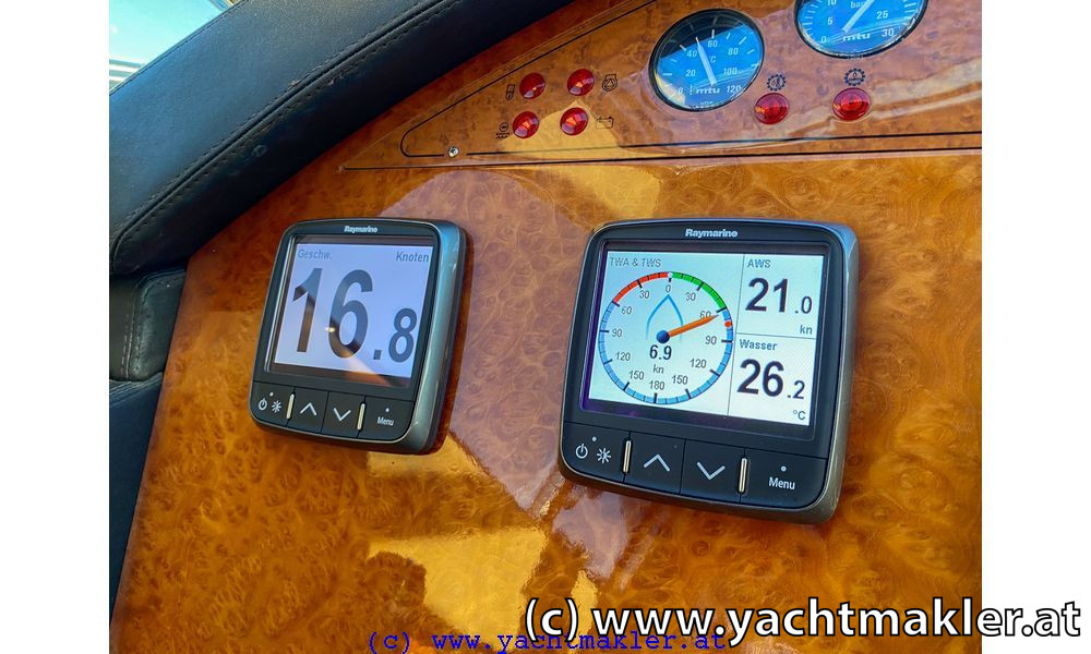 Druckwasseranlage, Warmwasseranlage, Bordcomputer, Kompass, GPS, Selbststeueranlage